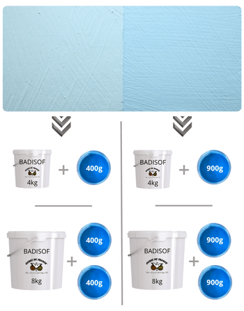 Results of Bleu Indien mixtures according to our packaging, in our limewash Badisof naturel