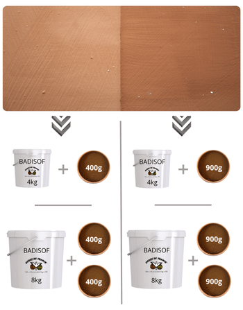 Results of Brun 610 mixtures according to our packaging, in our limewash Badisof naturel