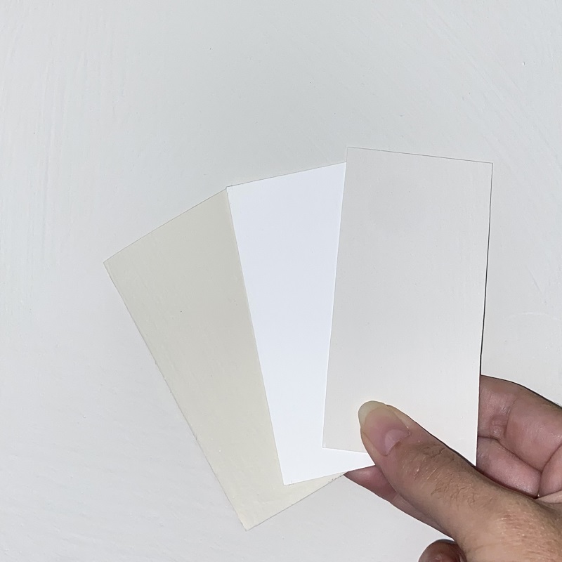 That's why we've come up with a simple, tangible, and true-to-life solution: in addition to our powder samples, we now offer real paper samples, hand-applied to Canson paper, in a 5 x 10 cm format.