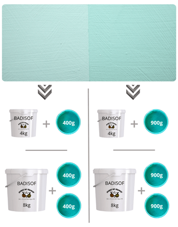 Results of Vert à la chaux mixtures according to our packaging, in our limewash Badisof naturel