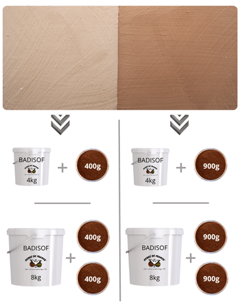 Results of Ombre brûlée de Chypre B mixtures according to our packaging, in our limewash Badisof naturel