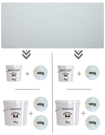 Results of Blanc Tiona mixtures according to our packaging, in our limewash Badisof naturel