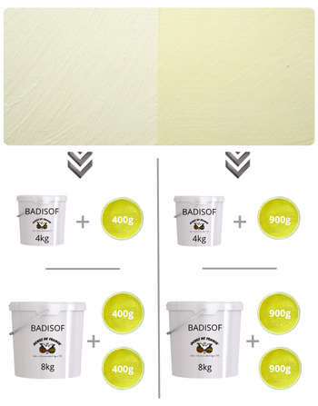 Results of Jaune citron mixtures according to our packaging, in our limewash Badisof naturel