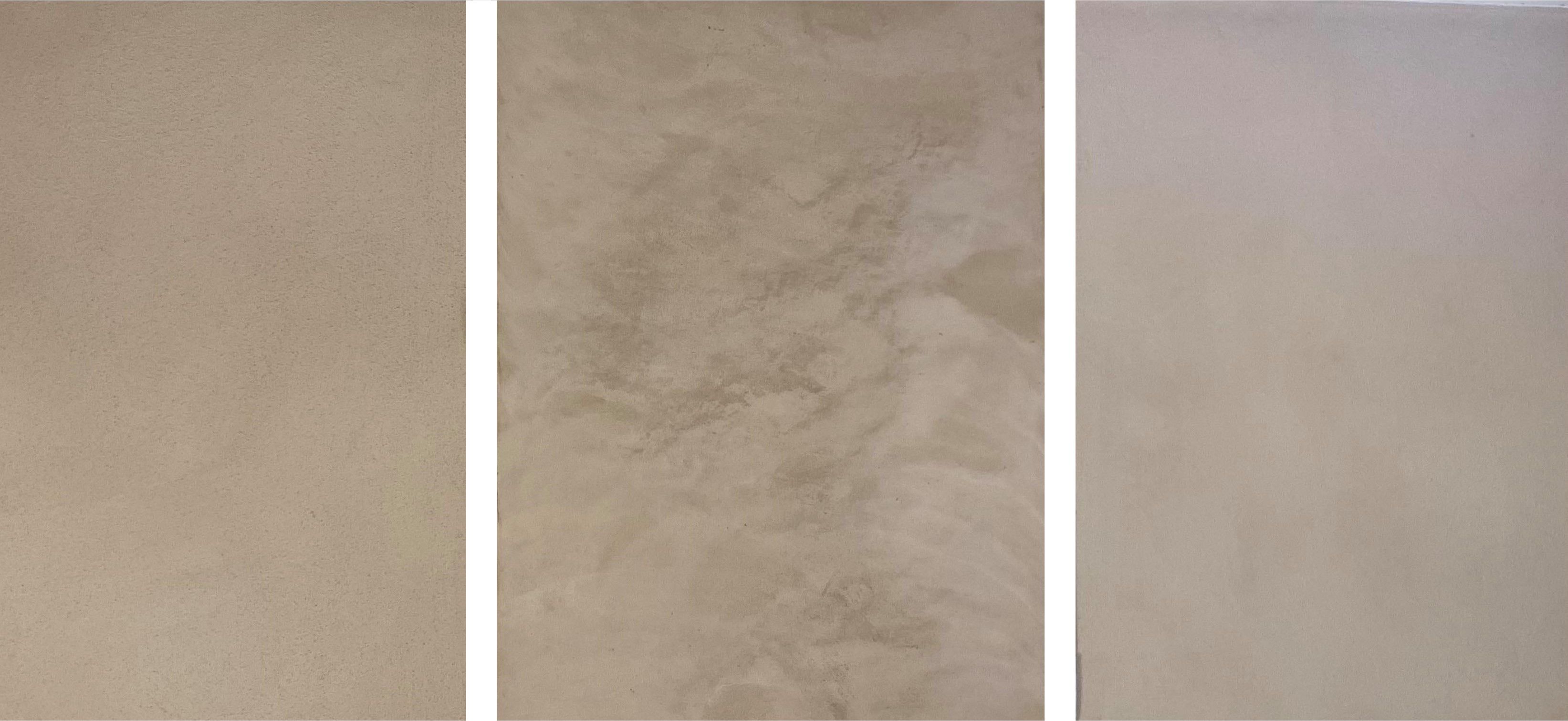 Différence entre le Badisof Plus brossé (à gauche) ; le Badisof Plus lissé (au milieu) et le Badisof (à droite) - exemple en teinte Silex