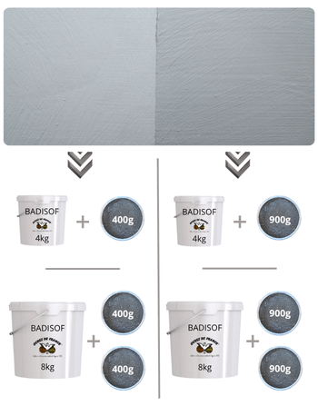 Résultats de mélanges de Gris tourterelle selon nos conditionnements, dans notre badigeon de chaux Badisof naturel