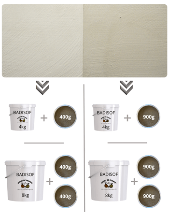 Résultats de mélanges d'Ombre CPR selon nos conditionnements, dans notre badigeon de chaux Badisof naturel