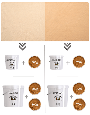 Résultats de mélanges d'Ocre Havane selon nos conditionnements, dans notre badigeon de chaux Badisof naturel