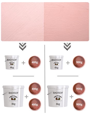 Résultats de mélanges de Bois de rose selon nos conditionnements, dans notre badigeon de chaux Badisof naturel